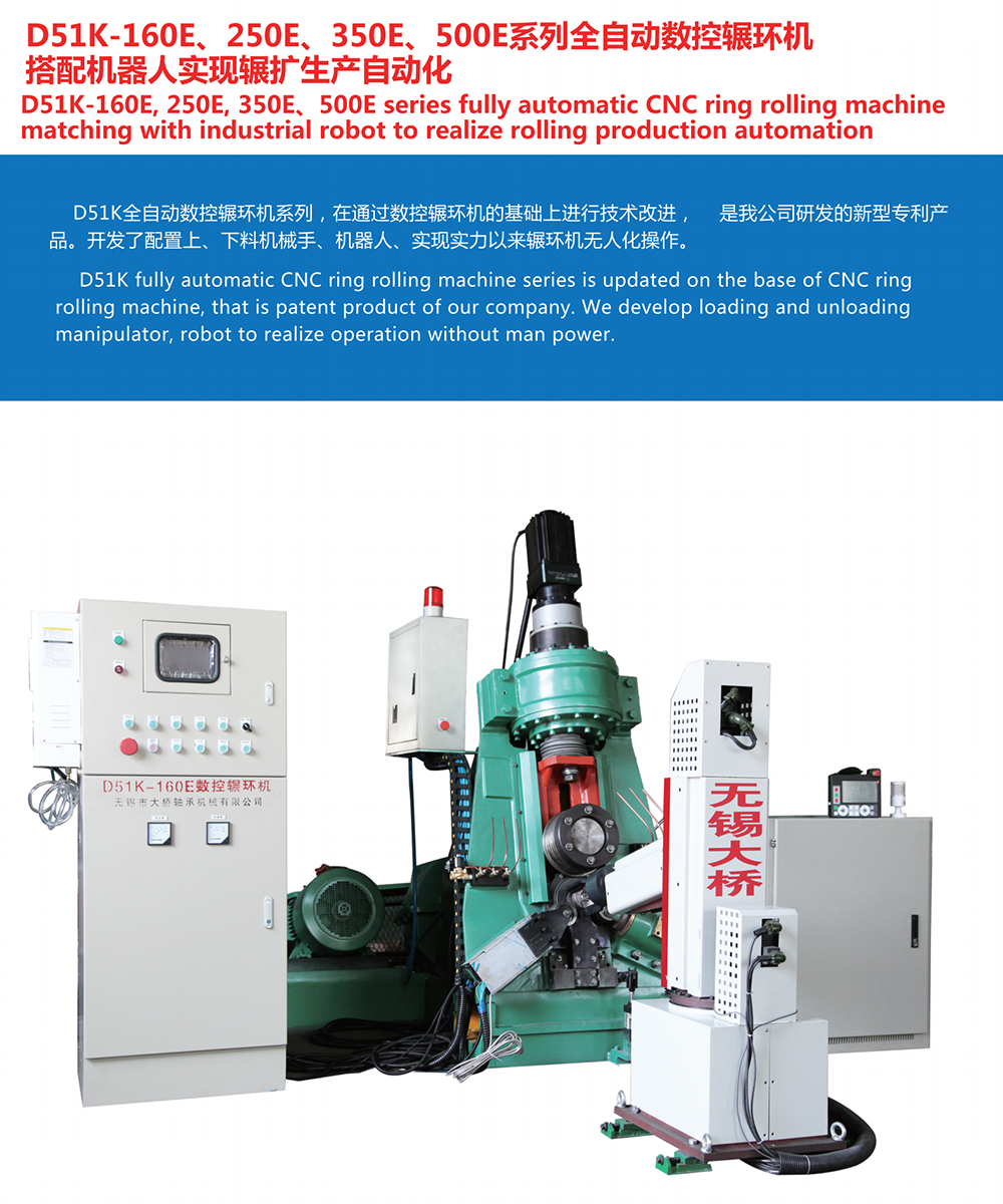 D51K fully-automatic CNC ring rolling  machine series is updated on the base of CNC ring rolling machine,that is patent product of our company.We develop loading and unloading manipulator,robot to realize operation without man power.